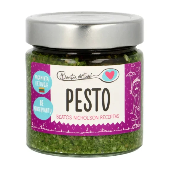 Pesto – klasikinis, bet su lietuviškomis natomis. Jame daug šviežio baziliko, baltymų kupinų kanapių branduolių ir gardžių moliūgų sėklų. Žinoma, čia yra ir kieto fermentinio sūrio bei česnako – viskas, kas sukuria intensyvų ir sodrų skonį. Be konservantų, todėl atidarius laikyti šaldytuve.