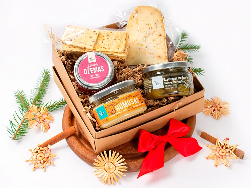 Rinkinį sudaro brandintas sūris, krekeriai, bruknių džemas su čili pipirais, humusas su kietuoju sūriu, alyvuogės medaus ir laimo marinate. Tokį asortimentą rasite tikrai ne kiekvienoje dzūkiškoje pirkioje, tad dovanokite tiems, kuriems linkite „visus užmačius išpildyc“. Rinkinys pritaikytas ir vegetarišką mitybą propaguojantiems draugams, artimuosiems ar bendradarbiams. Puikiai tinka kaip ir verslo dovana.