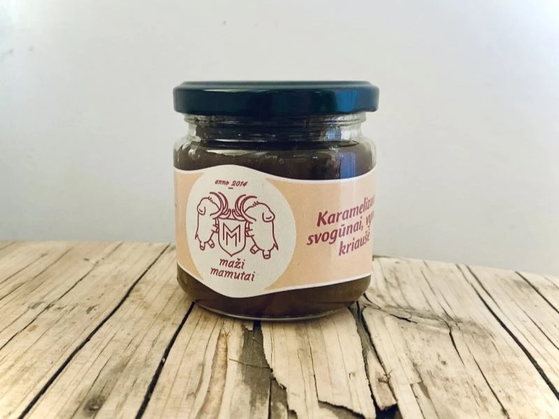 Karamelizuoti svogūnai, vynas, kriaušė 200 g, 1 vnt.