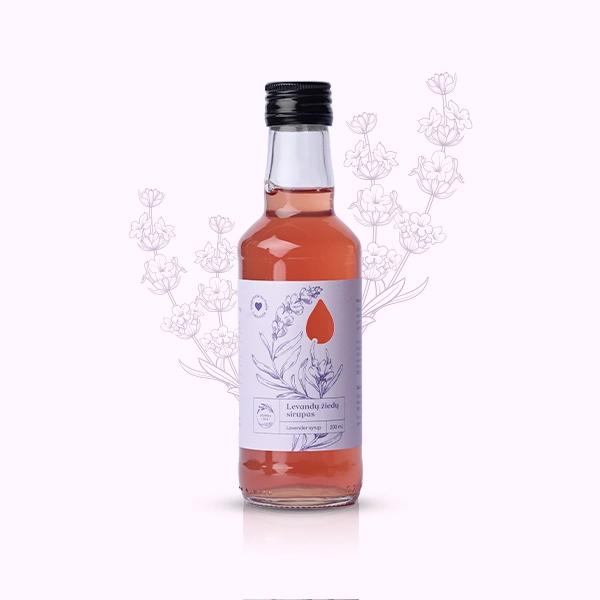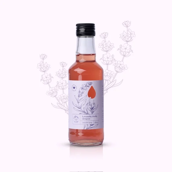 Natūralus levandų žiedų sirupas, pagamintas Levandų ūkyje. Juo galima pagardinti konditerijos gaminius, ledus, blynus, keksus. Taip pat naudoti kuriant unikalius kokteilius, kurie nustebins ne tik jūsų svečius, bet ir jus pačius. Levandų sirupas tiks ir norint pasigaminti gaivinantį, švelnaus ir svajingo skonio gėrimą – tiesiog įpilkite kelis lašus levandų sirupo į stiklinę vandens su ledukais, gerai išmaišykite, papuoškite citrinos žievelės griežinėliu arba čiobrelio šakele.