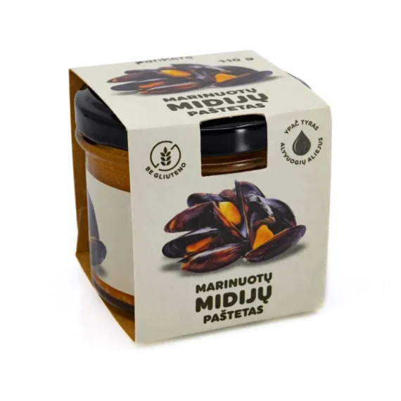 Sodrus jūros skonis – švelnios marinuotos midijos paverstos subtiliu paštetu. Idealus užkandis prie balto vyno.